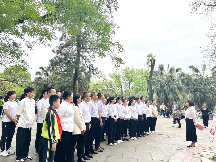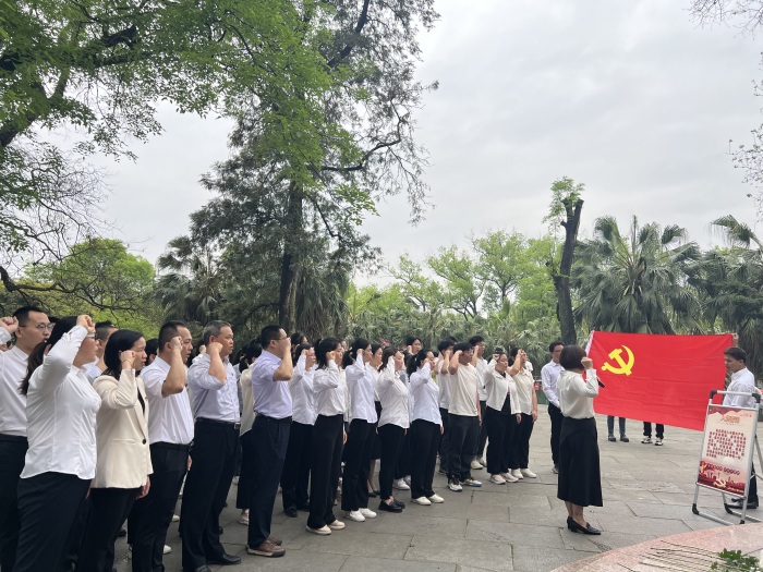 在副院长陆雪萍的带领下,党员庄严站立在烈士纪念塔前,举起右手,重温入党誓词,铿锵有力的宣誓声久久回荡在纪念塔前。