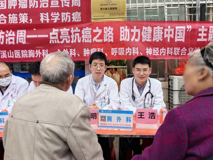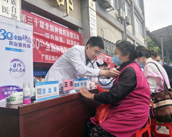 2024年4月15日至21日是第30个全国肿瘤防治宣传周。为全面贯彻落实党的二十大精神,认真落实健康中国战略,高质量推动国家癌症防治专项行动,提高全社会癌症防控意识和能力,营造全民防癌抗癌的良好氛围,4月20日,广西壮族自治区南溪山医院胸外科、心脏大血管外科、肿瘤内科、呼吸与危重症医学科、神经内科组织开展以“点亮抗癌之路 助力健康中国”为主题的第30届全国肿瘤防治宣传周活动。