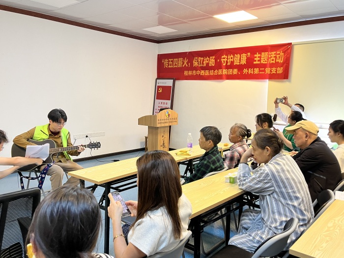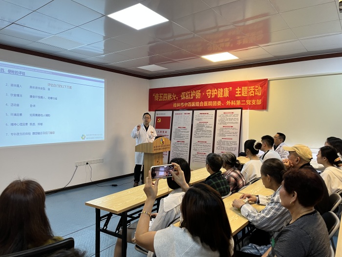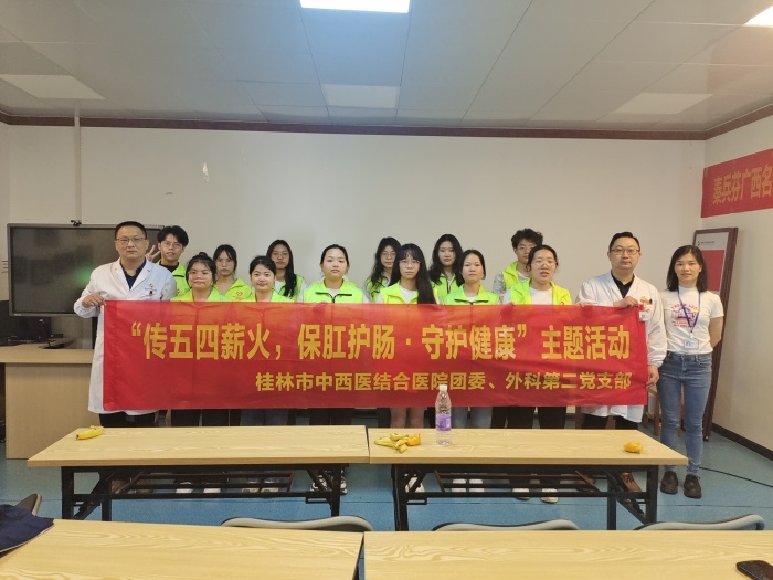 为传承“五四”精神,提高住院患者医学健康常识,推进党建团建与业务深度融合,践行“卓越服务”理念,近日桂林市中西医结合医院团委组织了15名志愿者联合外科第二党支部在肛肠科党建活动室开展了以“传五四薪火,保肛护肠·守护健康”为主题的志愿服务走进病房活动。
