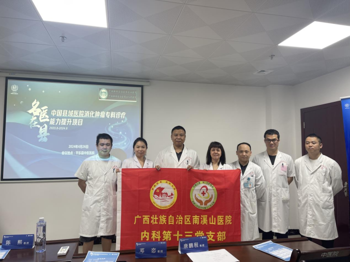 为进一步落实优质医疗资源下沉,提升基层医院服务能力,今日,广西壮族自治区南溪山医院肿瘤内科三病区(腹部盆腔生殖系肿瘤)陈熙主任率领团队走进桂林市平乐县中医院外一科,通过查房、讲座、病例讨论等方式开展“中国县域医院消化肿瘤专科诊疗能力提升项目”活动,为平乐县肿瘤患者递送健康。