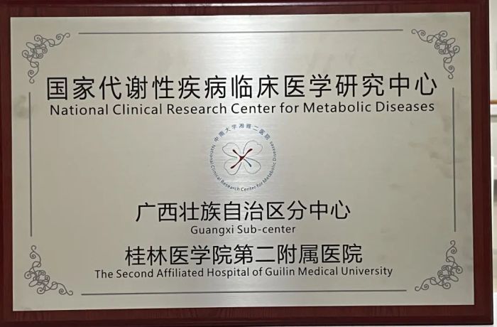 桂医二附院于2023年提出申请,通过国家中心认定,目前正式成为国家代谢性疾病临床研究中心广西壮族自治区分中心。