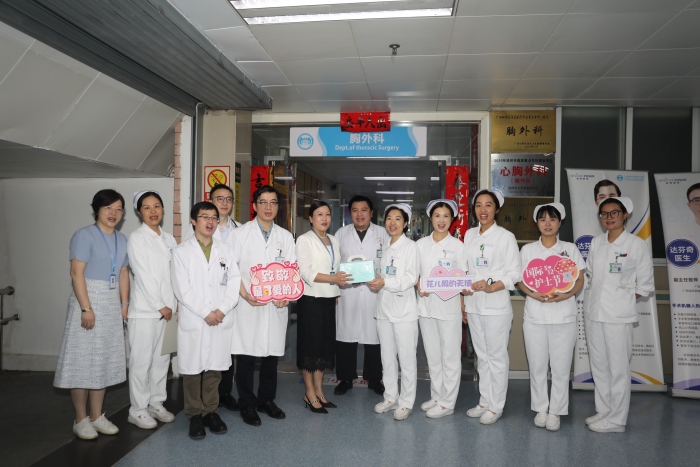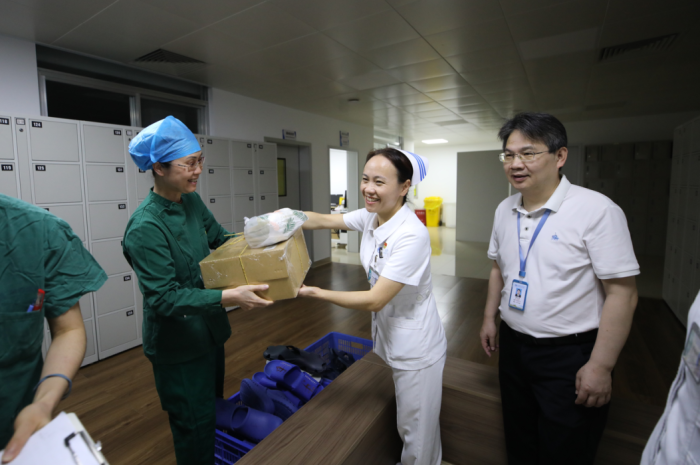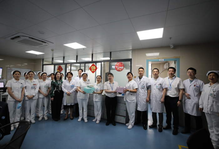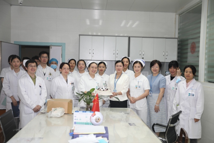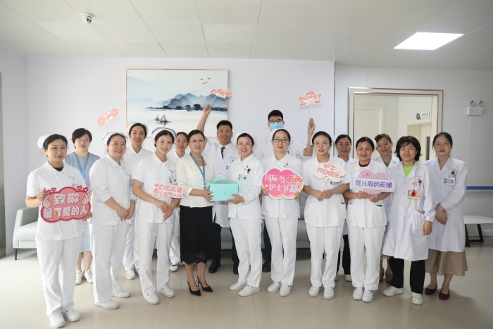 此次活动由医院党委书记柳宏林、副院长唐芬、胡长付,总会计师江渊带队分为四组,分别前往住院部、医技楼、门诊楼及行政办公楼,向各科室的护理人员送上定制蛋糕。