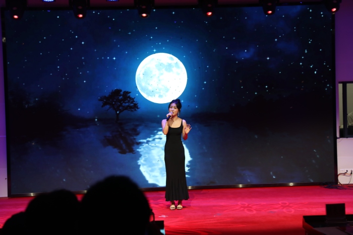 love》独唱《阿楚姑娘》、《这就是爱》等精彩纷呈,展现了不同艺术形式的魅力。特别是南溪山班成员与桂林医学院圣洁艺术团共同合作的朗诵《错位时空》,以深情的朗诵和真挚的情感表达,带领观众重温了那些难忘的时光。