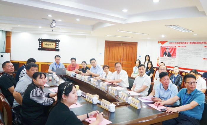 5月15日下午,崇左市政协副主席农海波、政协教科卫体委主任冯月珍、卫健委副主任梁修深一行到桂林市中医医院就中医药产业发展进行参观交流。桂林市政协副主席谭建国,市政协教科卫体委主任秦永川、副主任邓凡,市卫健委副主任麦浩及医院领导班子陪同调研。