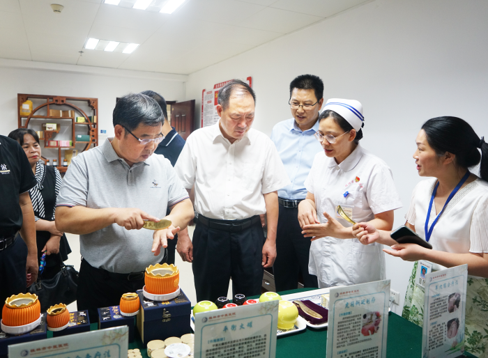 调研组一行深入医院外治康复部和治未病中心,参观了中药香包、特色制剂、瑶药药棒等中医药产品,品尝了医院研发的药膳奶茶和养生茶。调研组还体验了扶阳罐温刮温推疗法、火龙罐综合灸疗法、平衡火罐、虎符铜砭刮痧、耳穴综合疗法等中医特色适宜技术。体验过后调研组纷纷竖起大拇指,感叹身体都轻松许多,深刻体会到了中医文化的博大精深和独特魅力。