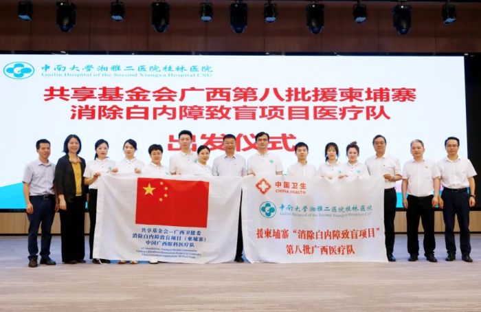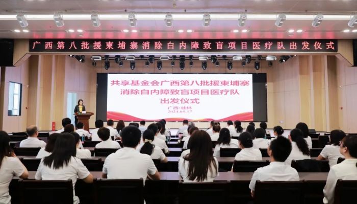 5月17日下午,中南大学湘雅二医院桂林医院在临桂院区综合楼多功能厅举行了一场充满温情与使命感的仪式。此次广西第八批援柬埔寨消除白内障致盲项目医疗队出发仪式,是向即将踏上征程的8名队员致以深沉的敬意、真挚的祝福与殷切的期待。