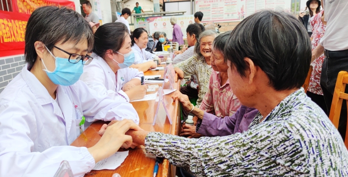 当天一早,桂林市中医医院组织内科、骨科、心血管病科、妇科、外治康复部等专家骨干到恭城镇古城村为当地群众义诊。义诊现场,专家们耐心细致地为村民把脉问诊、答疑解惑,现场免费测量血压血糖,免费提供中医外治疗法体验,免费发放本院中药制剂,进行中医药健康文化素养知识宣教,让村民们在日常生活中也能自我保健。