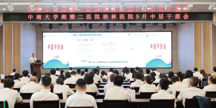 5月22日下午,中南大学湘雅二医院桂林医院召开5月份中层干部会。医院党政领导班子、全体中层干部参加,会议由副院长温利辉主持。