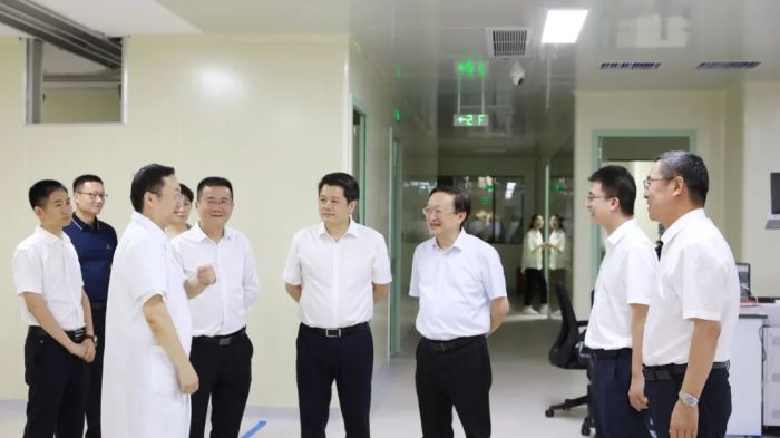 易红书记一行先后考察了医院门诊部、检验科、信息网络中心、全科医学科(舒适化服务病房)、健康管理中心等区域,通过看现场、听介绍、观成效的方式详细了解了中南大学湘雅二医院桂林医院临桂院区的基本建设、整体功能规划布局、医疗运行等情况。