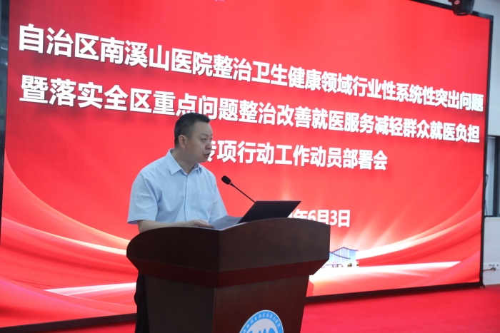 为深入贯彻中央纪委国家监委、自治区纪委和委党组关于开展集中整治群众身边不正之风和腐败问题的工作部署,进一步改善患者就医服务,减轻群众就医负担,6月3日,自治区南溪山医院召开整治卫生健康领域行业性系统性突出问题暨落实全区重点问题整治改善就医服务减轻群众就医负担专项行动工作动员部署会。全体院领导、全院中层干部出席会议。