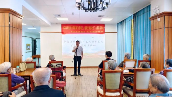 为提高社区老年居民对眼部健康的重视,宣传普及眼健康科学知识,6月6日在第29个全国“爱眼日”当天,中共中南大学湘雅二医院桂林医院委员会联合中共桂林市象山区民族社区委员会到活力花园养老公寓开展“关注普遍的眼健康,全民爱眼,共筑‘睛’彩”居民健康讲座暨义诊活动。中南大学湘雅二医院桂林医院党委副书记、纪委书记李明参加活动。