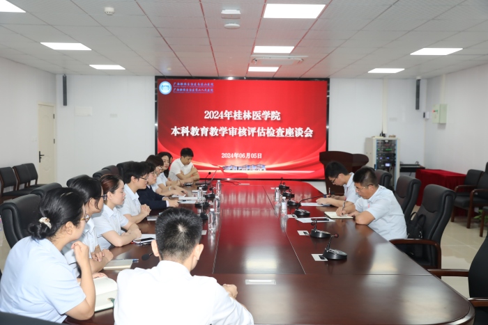 6月5日,教育部本科教育教学专家组成员杨路、雷辉到广西壮族自治区南溪山医院开展桂林医学院本科教育教学审核评估工作。桂林医学院教务处副处长彭小红、南溪山医院党委副书记、院长李朝旭、副院长胡长付、教学管理科副科长赵红丽及相关科室负责人员陪同考察。