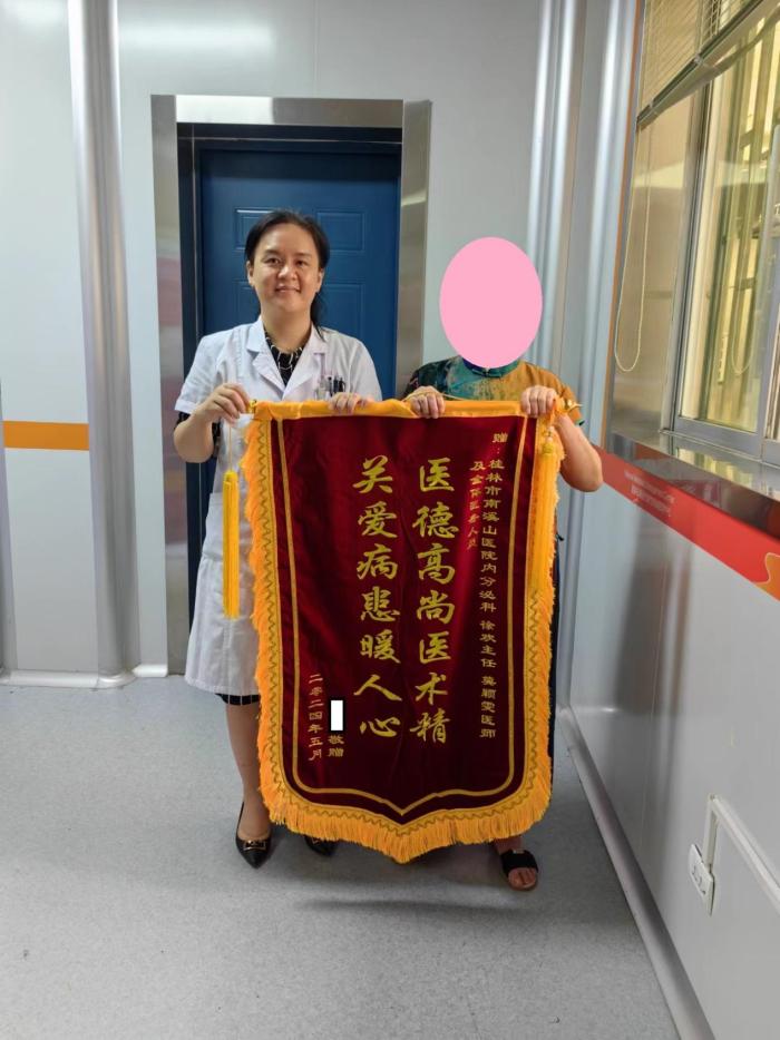 虽然胰岛素自身免疫综合征为罕见病,但经过内分泌科团队专业的治疗及密切的随访,唐女士的病情得以好转,生活质量明显改善,焦虑情绪得以缓解,唐女士十分感激,为内分泌科全体医务人员送来一面锦旗。