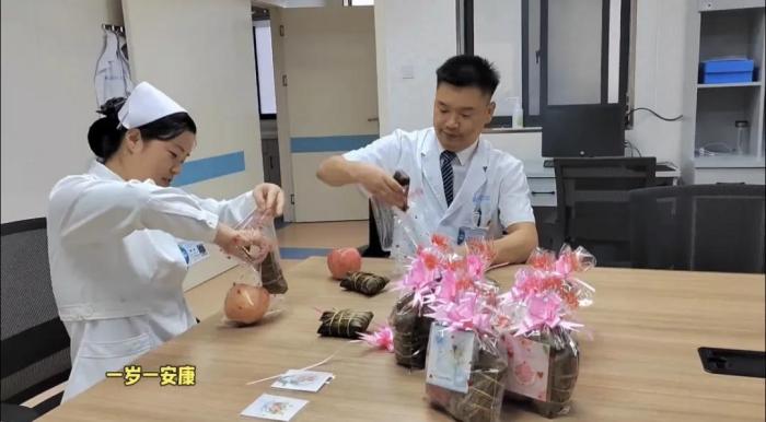 “奶奶,我们给您送粽子来啦!祝您端午安康,早日康复!”医护人员每走进一间病房,他们都会用亲切的话语和温暖的笑容,将这份节日的祝福传递给每一位患者。他们不仅关心患者的身体状况,还认真倾听患者的心声,对医院的服务给予建议和评价。整个病房都弥漫着粽子的香气和温馨的氛围。
