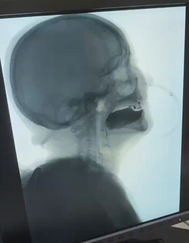 吞咽造影检查是指在X线透视下,对吞咽过程中的口、咽、喉、食管的吞咽运动进行特殊造影。医生通过侧位及正位成像,观察患者吞咽不同黏稠度、不同剂量的造影剂,进一步评估出四个吞咽阶段(包括口腔准备期、口腔期、咽期、食管期)的异常情况。