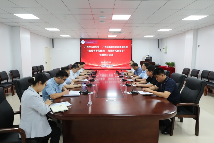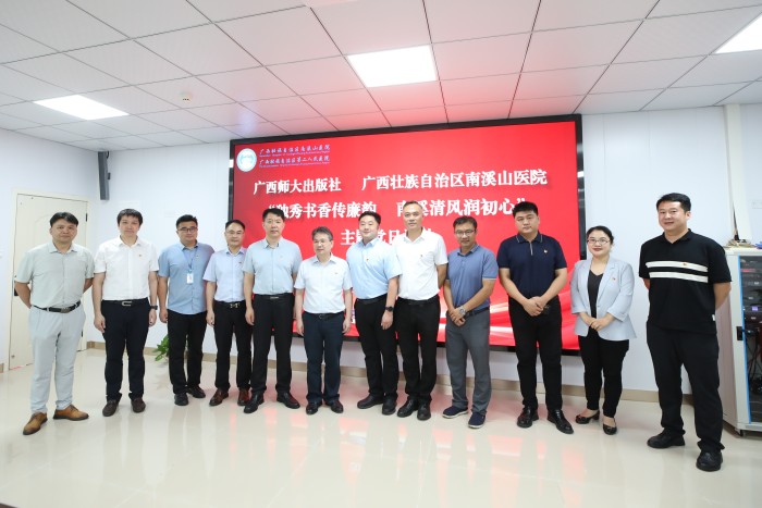 为推动医院廉洁文化建设和书香社会建设,引导广大干部职工在书香廉韵中筑牢思想防线、坚守廉洁自律,6月12日,广西壮族自治区南溪山医院与广西师范大学出版社开展“独秀书香传廉韵 南溪清风润初心”联合主题党日活动,并在医院教学科研综合楼开展座谈会。广西师范大学出版社集团党委副书记、纪委书记黄晓坚、广西师范大学出版社集团独秀书房公司总经理容罡、副总经理高冰波、广西师范大学保卫处副处长邱惠旺、贾越峰以及自治区南溪山医院党委书记柳宏林、纪委书记喻泽军、总会计师江渊和医院相关科室负责人参加会议。