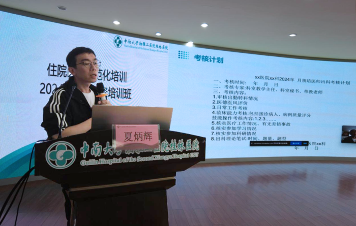 近日,中南大学湘雅二医院桂林医院住院医师规范化培训办公室在叠彩院区五楼会议室精心组织了一场院级师资培训班。此次培训得到了中南大学湘雅二医院驻桂专家及中南大学湘雅二医院桂林医院全科专业基地的鼎力支持,共150余名教师参与,叠彩、秀峰、南门三个社区卫生服务中心及桂林市第三人民医院、桂林市社会福利医院两个协同单位部分教师参加培训。