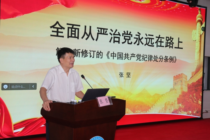 广西壮族自治区党委组织部特聘教授张坚以《全面从严治党永远在路上-----解读新修订的《中国共产党纪律处分条例》为题进行专题授课。他详细解读了新修订的《中国共产党纪律处分条例》,同时,针对当前反腐败斗争形势,结合职务犯罪典型案件以及医疗卫生系统案件,进一步以案明纪、以案释法。