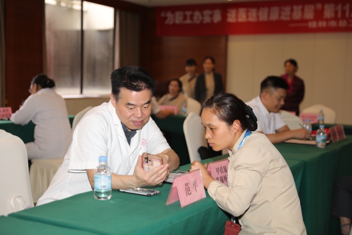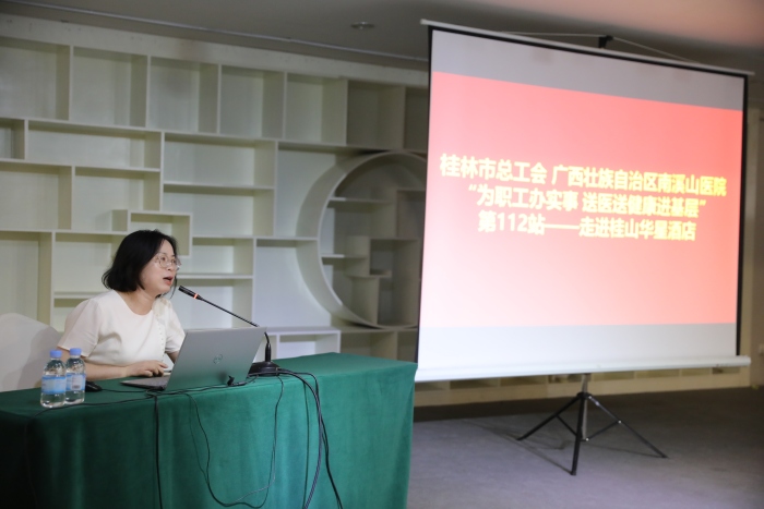 6月18日,桂林市总工会携手广西壮族自治区南溪山医院,在桂山华星酒店举办了“为职工办实事 送医送健康进基层”第112站活动。本次活动旨在为酒店职工提供急救知识和健康检查服务,进一步提升职工的健康意识和自救互救能力。