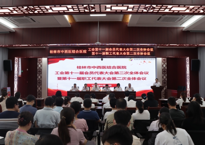 6月13日,桂林市中西医结合医院第十一届职工代表大会第二次全体会议在医院中医文化大讲堂召开。来自全院各工会小组共84名职工代表参加会议。