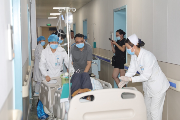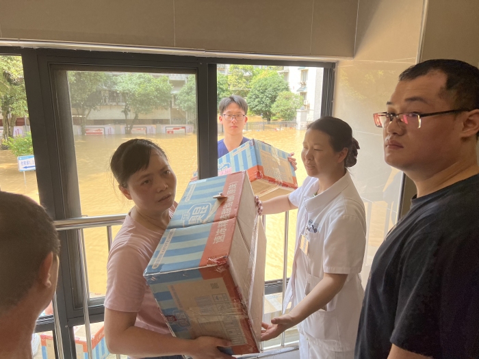 迅速响应护周全,守护病患生命线。19日上午,当洪水漫入院区前,医院党委就已迅速启动应急预案,协调全院职工,把位于住院部一楼的住院病人全部转移到二楼以及更高的楼层,在洪水到来之前做好防范措施,确保每一位病患都能得到及时救治,因为内涝严重导致全院停电,医院紧急从外单位及时借调了7台发电机,确保危重症患者的治疗不受影响。