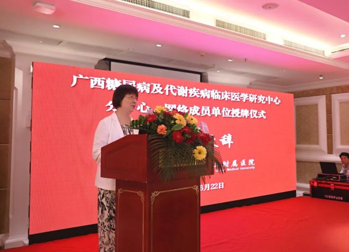 会议伊始,莫碧文代表主办单位向大会致辞。她对远道而来的专家及参会人员表示热烈的欢迎和衷心的感谢。并指出,建立糖尿病及代谢疾病临床医学研究中心分中心及网络成员单位,对推动广西医疗卫生事业的发展,提高人民健康水平,具有重要的意义。桂林医学院第二附属医院作为广西糖尿病及代谢疾病临床医学研究中心的依托单位,今后将与大家携手,共同推进糖尿病及代谢疾病的研究与防治工作。并以本次会议为契机,进一步发挥优势、整合资源,不断探索新的诊疗方法和技术手段,为患者提供更加优质、高效的医疗服务。