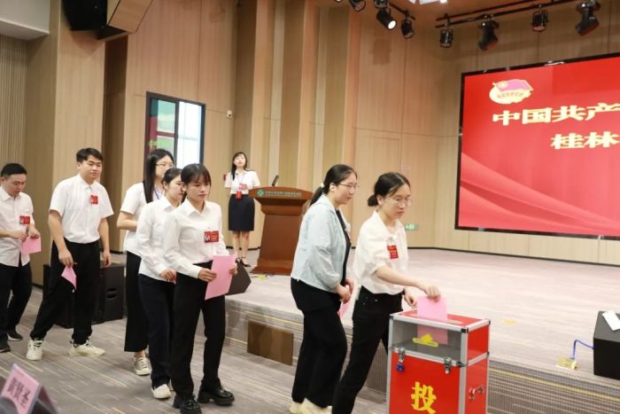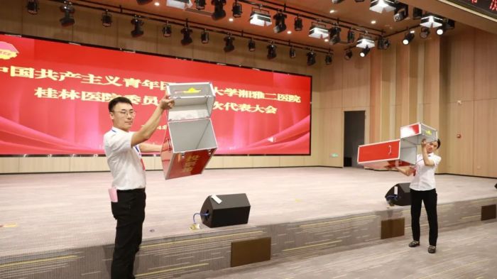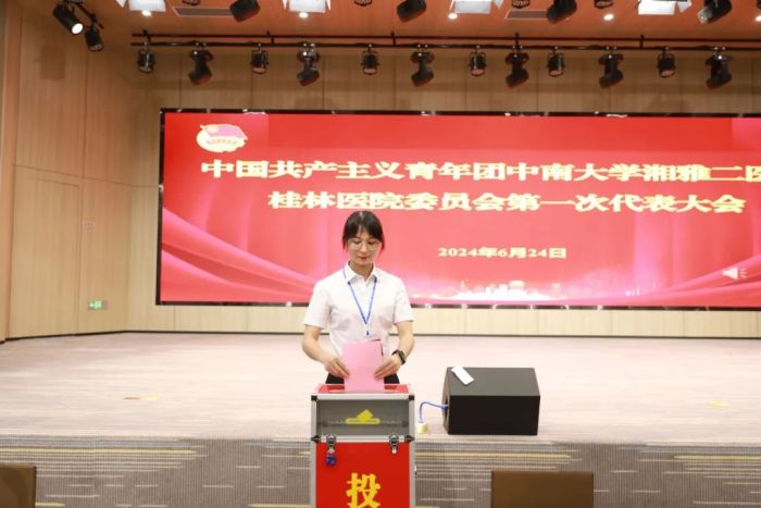 会议期间,与会代表审议并通过了代表大会议程、团委工作报告、团委换届选举大会选举办法、代表资格审查情况报告以及团费收缴、使用和管理情况报告,严格按照相关程序,以无记名投票方式选举产生了中国共产主义青年团中南大学湘雅二医院桂林医院第一届委员会委员:文佳佳、刘鑫林、李鹏飞、唐咪、唐怡琳、唐鉴浩、黄忠盛(以姓氏笔画为序);选举产生了中国共产主义青年团中南大学湘雅二医院桂林医院第一届委员会书记唐鉴浩、副书记唐咪。