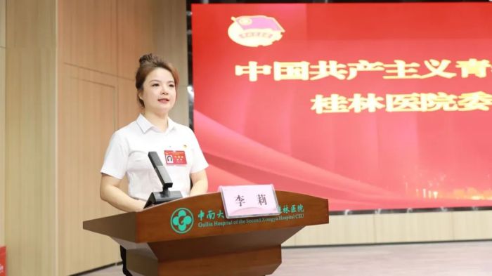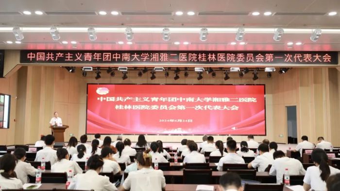 6月24日,中国共产主义青年团中南大学湘雅二医院桂林医院委员会第一次代表大会在临桂院区九楼多功能报告厅召开。本次大会的主题是全面贯彻落实习近平新时代中国特色社会主义思想和党的二十大精神,动员和组织全院团员青年同心逐梦、踏浪前行,开创国家区域医疗中心青春新篇章。