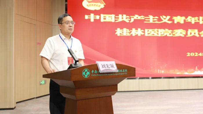 市卫生健康委党组成员、副主任,市卫生健康委团工委书记徐召霞,中南大学湘雅二医院桂林医院党委书记、院长刘先领携全院党政领导班子成员、部分职能部门负责人、党总支书记及团员代表共计120余人出席会议。