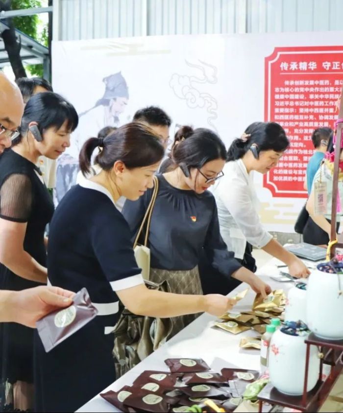 他们纷纷驻足品尝由中药材制作的养生茶饮和药膳,感受中药香囊带来的独特芳香,深入领略了传统中医药文化的独特魅力。