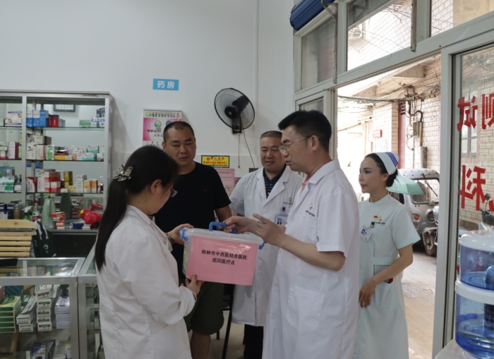 2024年6月23日下午,桂林市中西医结合医院蒋福明院长、陆雪萍副院长率领医疗巡回组一行7人,深入桂林市七星区多个受灾严重的基层医疗机构进行实地考察与指导。此次行程覆盖了桂林市东江社区卫生服务中心、东城社区卫生服务站、施家园社区卫生服务站、花桥社区卫生服务站、穿山乡三联村卫生室、穿山乡七星村卫生室和穿山乡七星村刘若坤村卫生室等地。