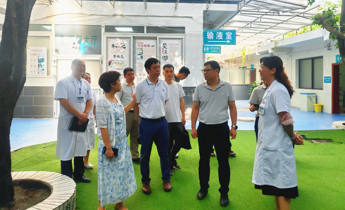 抵达东江中心后,韦辉副局长一行首先实地察看了内科、外科、放射科、康复科等门诊科室,深入了解了灾后重建工作的进展情况。他们详细询问了汛情期间的受灾状况、患者安全保障措施、灾后消杀及环境整治工作等,对东江中心在灾害面前的应对能力和表现给予了高度评价。