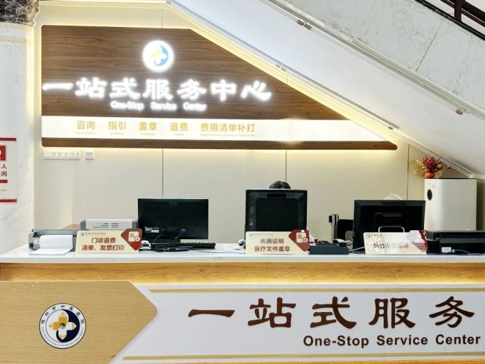 医院拓宽门诊大厅一站式服务中心服务范围,优化咨询指引、预检分诊、门诊退费、发票和清单打印、双向转诊、医疗文书盖章、投诉意见建议受理、退费、退号、打印发票及住院清单等服务流程,提升患者就医体验,提高就医效率。