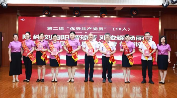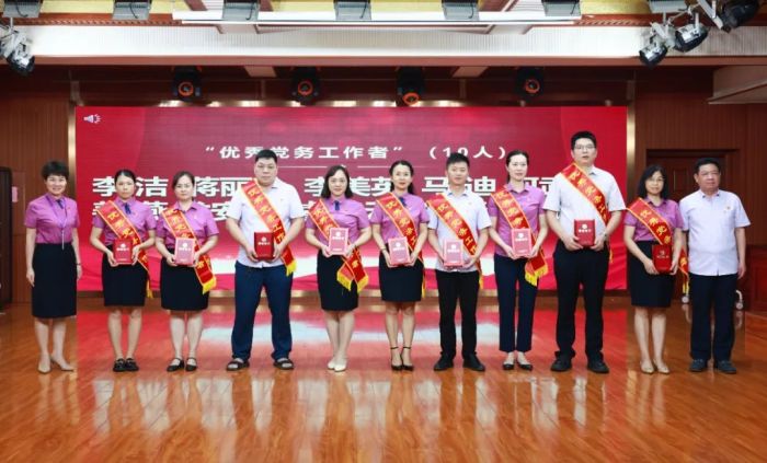 大会表彰了5个先进党支部、10名优秀党务工作者和49名优秀共产党员,获表彰代表依次上台领奖。