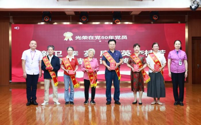 院党委书记文莉、院长卢浩华为医院“光荣在党50年”老党员代表颁发纪念奖章,感谢老前辈们为党的建设和医院的发展作出的杰出贡献,希望他们继续发挥政治优势和经验优势,为医院的高质量发展建言献策。