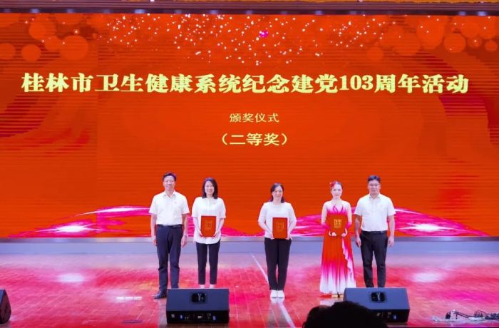此外,我院参加了桂林市卫生健康委举办的以“党建引领铸忠魂 凝心聚力迎七一”为主题的纪念建党103周年活动,手术麻醉党支部原创舞蹈《与生命赛跑》在19个参赛节目中脱颖而出,荣获二等奖的好成绩,参演的医护人员以饱满的热情、精彩的表演向党的生日献礼!