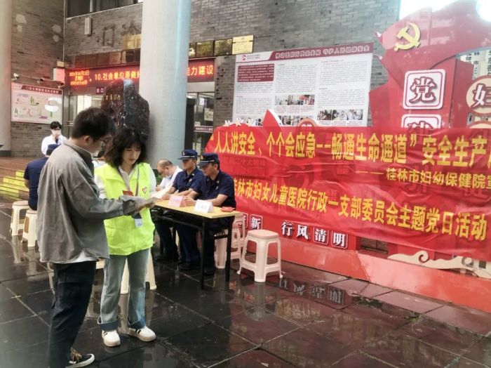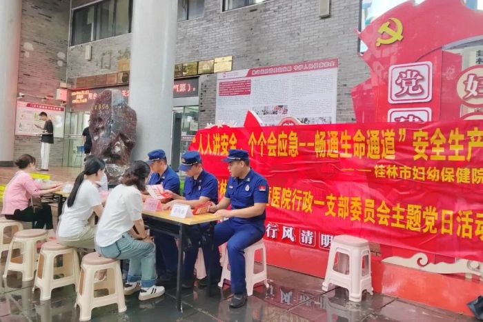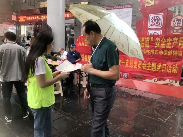 市妇幼保健院、叠彩区消防救援大队的消防宣传员和党员志愿者通过发放宣传资料、现场讲解等形式,为群众普及安全生产、消防安全等知识,强化群众安全生产防范意识和能力,切实把“人人讲安全,个个会应急”贯彻到居民的日常生活中。