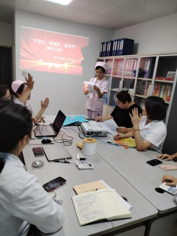 随后妇产科第三党支部开展了以《中国共产党章程》《中国共产党纪律处分条例》《中国共产党巡视工作条例》为主要内容的知识竞赛活动。分为“初露锋芒”必答题、“眼疾手快”抢答题和“放手一搏”风险题三个环节,各组党员全神贯注、踊跃答题。
