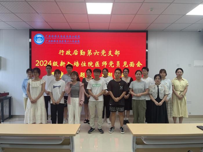 为欢迎2024级新入培住院医师党员,7月22日,行政后勤第六党支部在教学科研综合楼二楼PBL教室召开党员见面会。