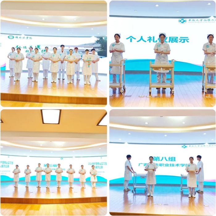 赛场上,同学们从仪容仪表、行姿、站姿、坐姿、推治疗车等多方面诠释护理礼仪的魅力,她们端庄的态度、专业的举止,展示出护理人员的独特风采,受到了参会的各位评委、带教教师的一致好评。