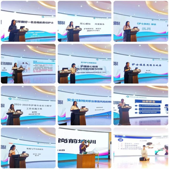 为确保培训的有效性和针对性,护理部精心制定了丰富的培训方案,邀请安全保卫部、医院感染管理科及临床科室护士长授课。授课内容涵盖管道护理、核心制度、护士条例、医患沟通、医院感染知识、消防安全知识、教学工作计划、急救知识等方面。
