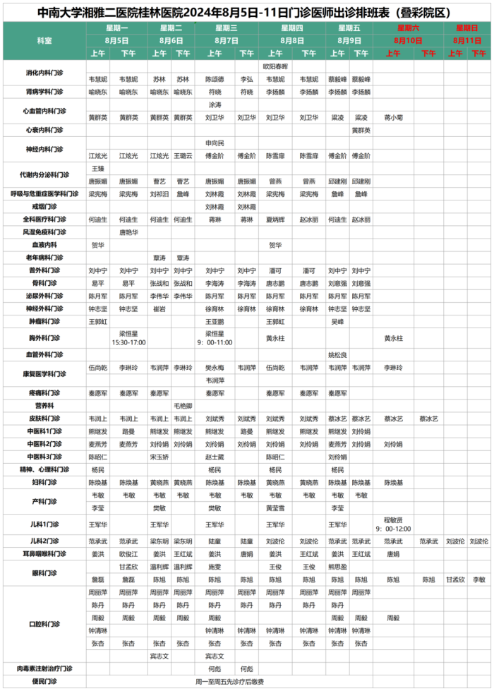 8月5日-8月11日门诊信息