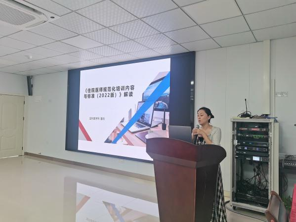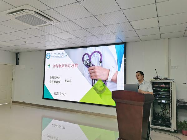 在此次活动中,全科专业基地的教学主任黄志东副主任医师,他为全体住培医师详尽阐述了本院全科专业住培基地及其人员的基本概况。黄主任不仅深入剖析了全院的师资团队力量,还明确指出了日常管理中的各项要求及有效的反馈渠道,为2024级新进的住培医师们勾勒出了一幅全面而清晰的基地蓝图,助力他们快速融入并深刻理解全科专业基地的运作机制。