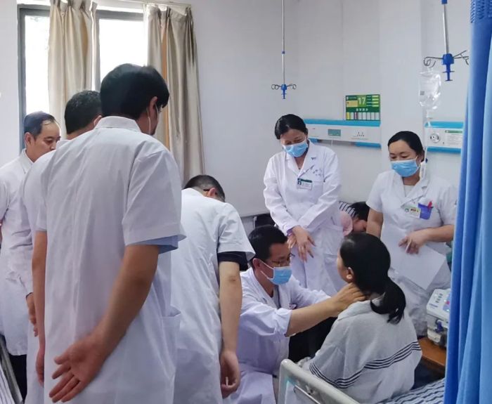 面对这一挑战,医院高度重视,迅速启动多学科会诊机制。由副院长曹丽君牵头,代谢内分泌科行政主任唐振媚主持,集结普外一病区(肝胆、甲乳、小儿外)、代谢内分泌科、肾病学科、泌尿外科、耳鼻喉科、病理科、放射科、麻醉科等多位权威专家,共同为文女士制定了科学、周密的治疗方案。
