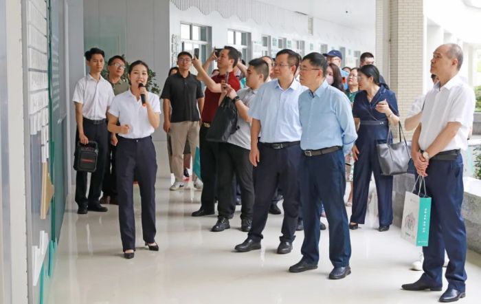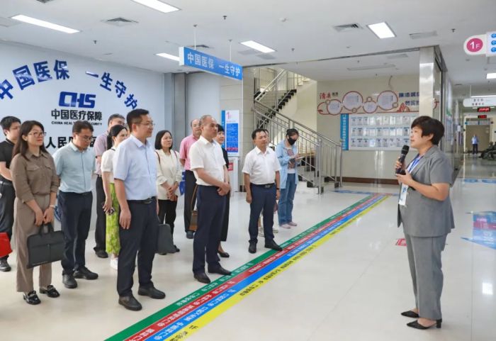 在讲解员热情洋溢的介绍中,参会代表首先参观了中南大学湘雅二医院桂林医院门诊、党建文化长廊、清廉文化墙、党员活动室以及健康管理中心,并就加强党建引领医院文化建设,将中华优秀传统文化融入医院高质量发展、融入新时代医院文化与学科建设等工作给予建议和指导。