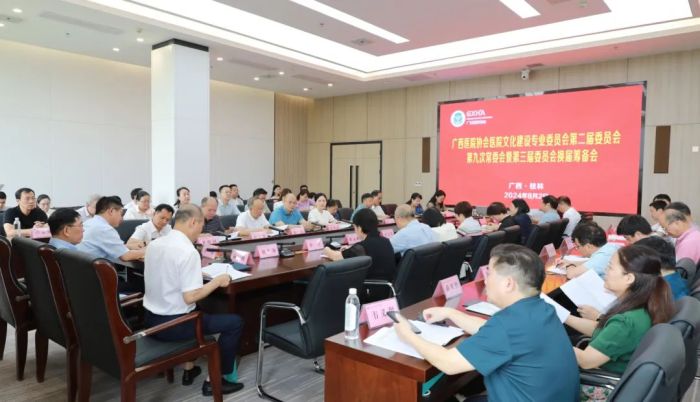 为提高医院文化建设工作水平,筑牢文化润心堤坝,为医院高质量发展提供强有力的思想保证、精神动力和智力支持。中南大学湘雅二医院桂林医院于近日承办了广西医院协会、广西医院协会医院文化建设专业委员会第二届委员会第九次常委会暨第三届委员会换届筹备会。广西医院协会会长韦波、秘书长罗洁,广西医院协会医院文化建设专业委员会名誉主任委员、右江民族医学院校长李雪斌,主任委员林栩以及第二届常务委员等70余人参加大会,中南大学湘雅二医院桂林医院党委书记、院长刘先领作为特邀嘉宾出席会议。