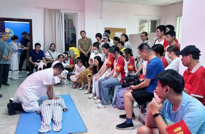 心肺复苏作为急救技能中的“黄金技能”,也是本次培训的重点内容之一。党员志愿者通过理论讲解和实操演练,向居民们传授了正确的心肺复苏步骤和注意事项。实操环节中,在专家的指导下,志愿者和居民亲身体验心肺复苏的操作过程,进一步加深了对这一急救技能的理解和掌握。