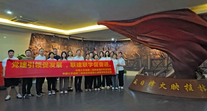 中南大学湘雅二医院血管外科党支部在书记王暾和副书记朱洁婷的带领下来到桂林医院,与心血管党支部开展联合党建活动。