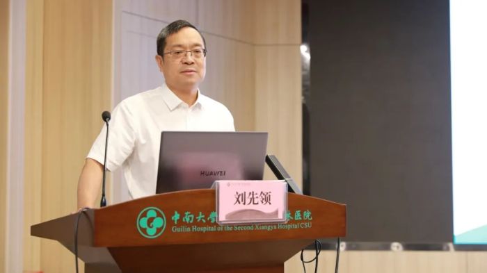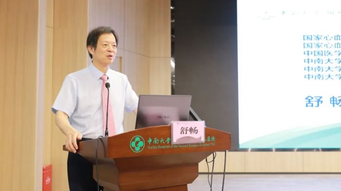 血管外科启动仪式上,舒畅教授对中南大学湘雅二医院桂林医院的建设给予了高度赞扬,并表示将竭尽所能为桂林医院的发展提供帮助和贡献力量。舒畅教授在主题演讲中对中国血管外科的国际化进程以及湘雅医学的历史进行了回顾,并展示了其团队在我国血管外科发展中做出的创新成果等。他鼓励大家在将来的学科发展建设和自身发展中要“成在大气,赢在和气,贵在志气,清在正气,硬在骨气”。