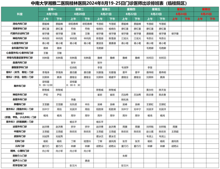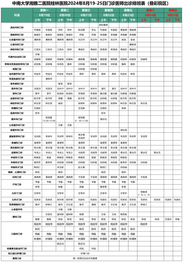 8月19日-8月25日门诊信息